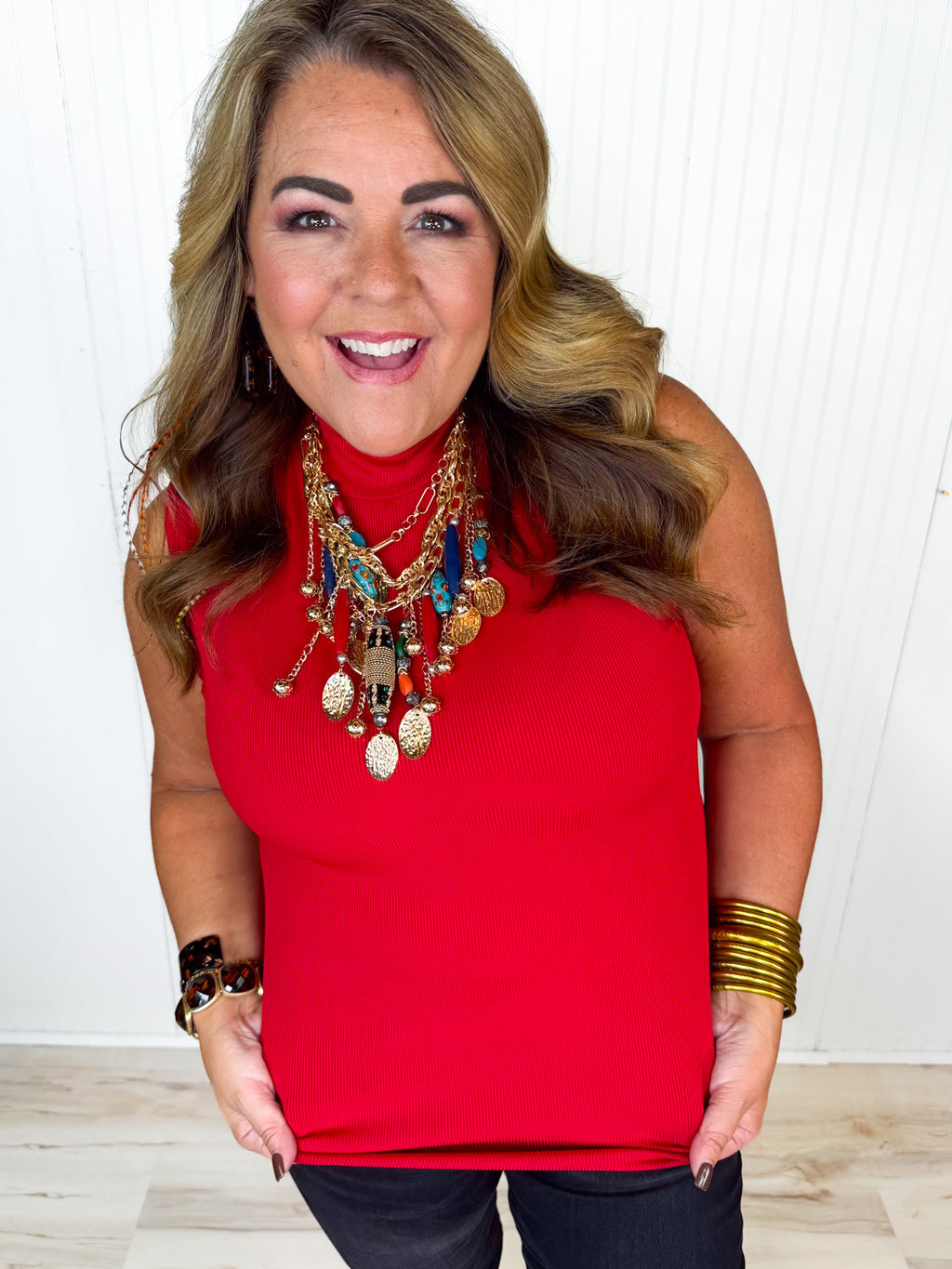 Season Staple Ribbed Tank- Red