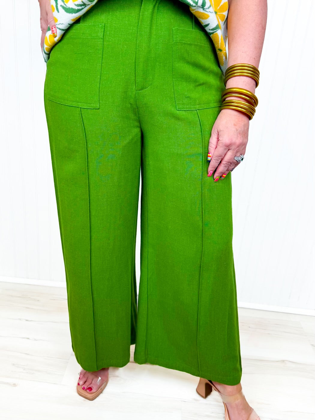 The Sunday Market Stroll Trousers are your new go-to for comfort and style. Designed in a beautiful olive green hue, these flowy trousers feature a lightweight viscose-linen blend that feels breathable and polished all at once. The front pleated detailing adds a tailored touch, while the elastic back waistband keeps the fit comfortable and flattering all day long. And yes… they have pockets!