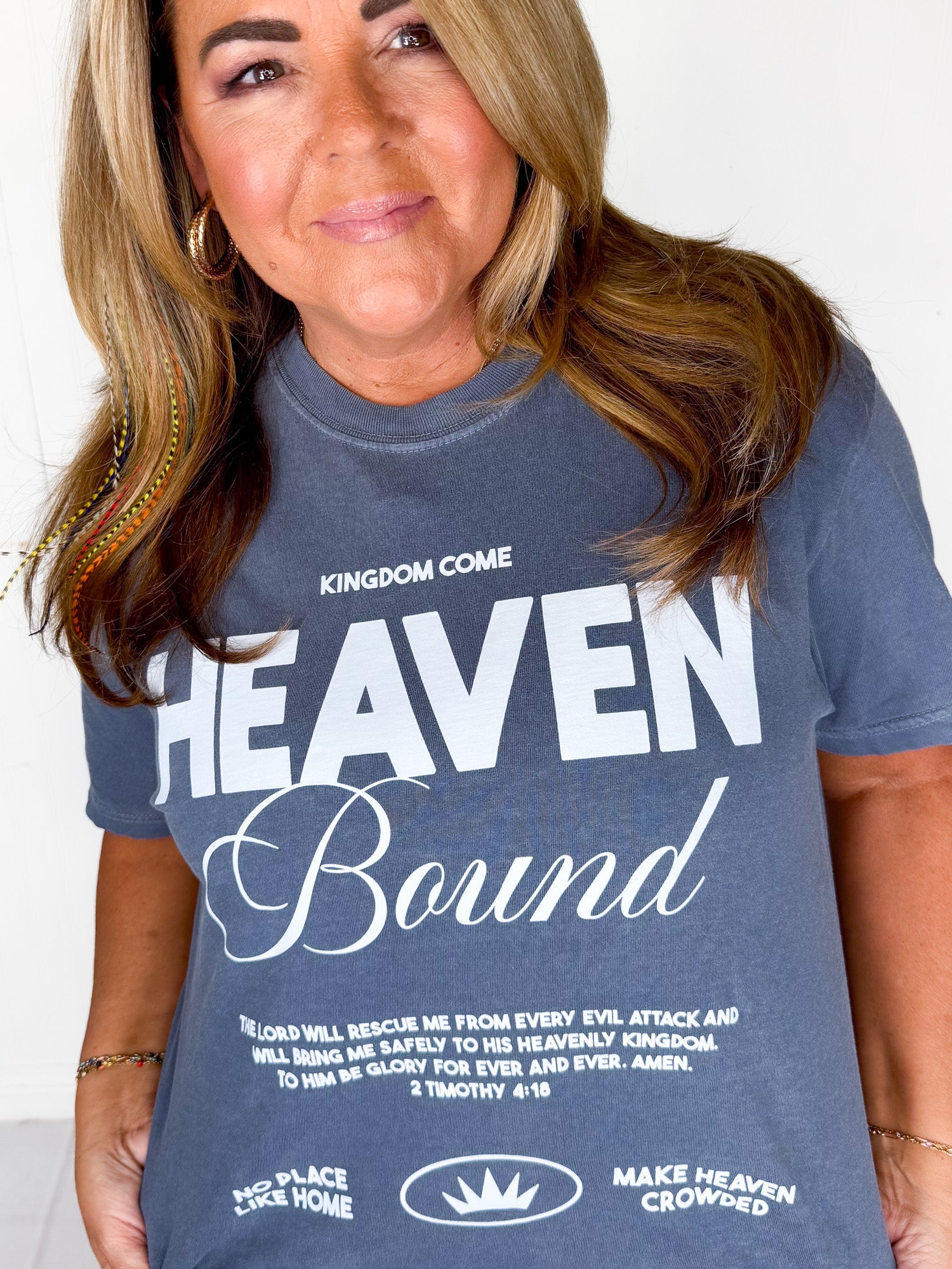 The Heaven Bound Tee is a relaxed-fit Comfort Colors t-shirt made from 100% cotton for all-day comfort. It features a bold graphic screen print and a soft, durable fabric that holds up wash after wash. Its versatile design makes it an essential piece for any wardrobe, perfect for year-round wear. For cooler fall days, layer it over a mesh top or under a denim jacket for added warmth and style. The classic fit provides ease of movement, making it ideal for casual outings, running errands, or relaxing at home. With its timeless look and high-quality material, this tee combines comfort and style effortlessly!