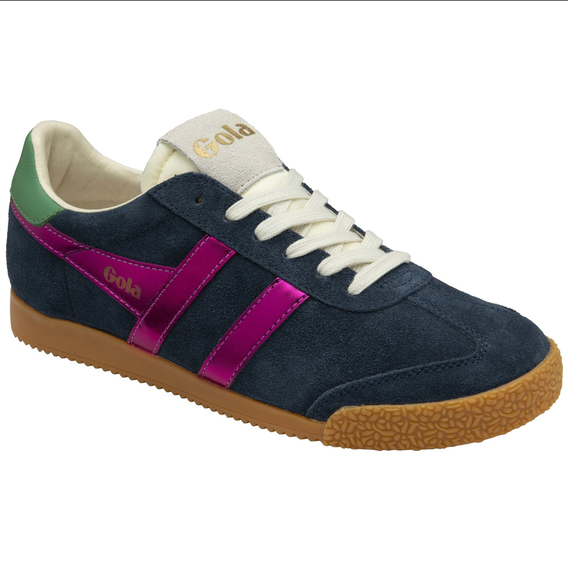 A new addition to the iconic Elan family, Gola Elan Glitz revises the signature Gola wingflash with a dose of rich metallic fuchsia tones to compliment the navy suede upper and emerald back heel tab. With opulent colour stories taking center stage, enjoy transitioning this classic women’s sneaker from day to night with ease.