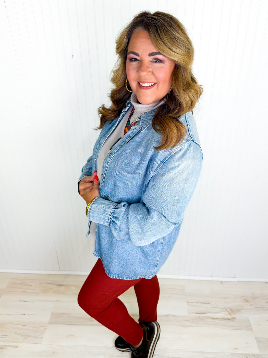 The Mika Button Down by Kut from the Kloth is a relaxed-fit top designed for comfort and versatility. Featuring a classic collar and full button front, it offers a timeless look that can be worn on its own or layered with your favorite sweaters and jackets. The soft fabric and easy silhouette make it a staple piece for the winter season, perfect for casual days or styled up for a polished outfit. This button down combines effortless style with everyday wearability, making it an essential addition to your wardrobe!