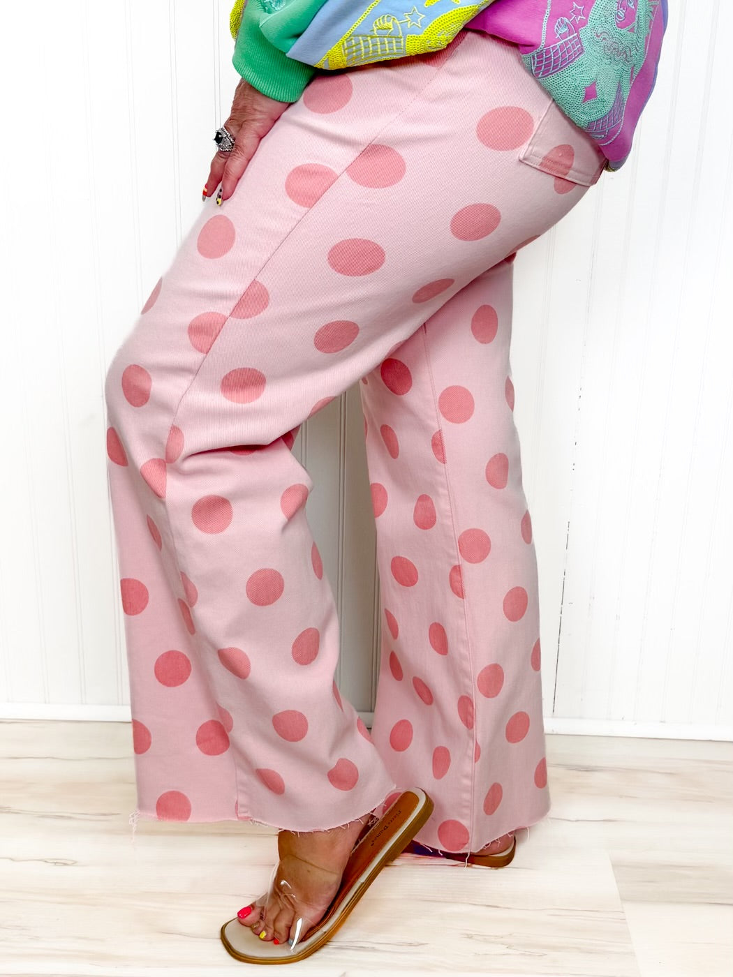 The Polka Dot Pinky Jeans are the perfect mix of playful charm and everyday comfort. Featuring a soft pink base with a classic polka dot print, these pants add a fun statement to your outfit while staying easy to style. The cotton-rich fabric offers breathable comfort with just the right amount of stretch for all-day wear. Dress them up with a blouse and wedges or keep it casual with a tee and sneakers either way, they’re sure to stand out.