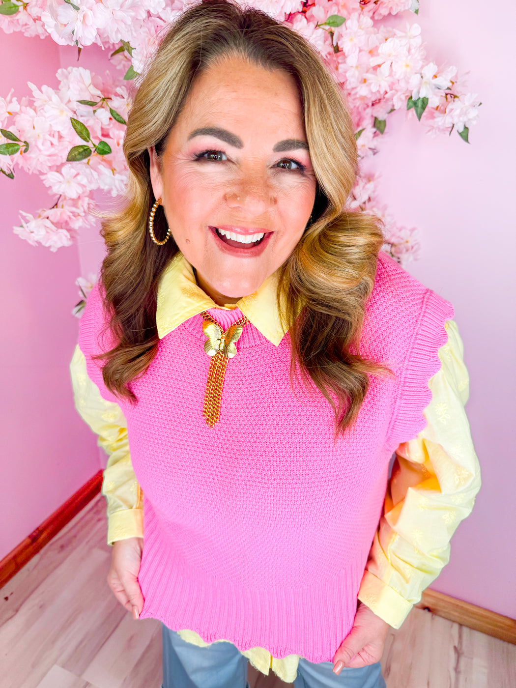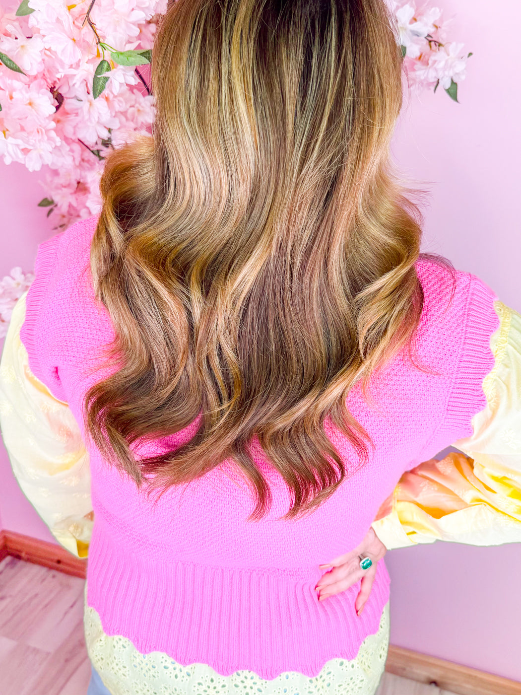 Soft, sweet, and effortlessly chic, the Sweet Peony Scalloped Sweater is a must-have for cozy days with a feminine touch. Crafted from a comfy blend of 60% cotton and 40% acrylic, this sleeveless knit sweater features a beautiful baby pink hue with delicate scalloped detailing along the hem and sleeves. Perfect for layering or wearing on its own, this sweater pairs effortlessly with jeans, skirts, or trousers for an elevated everyday look.