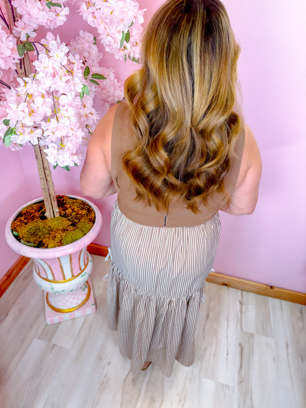 The Barefoot in Blooms Dress – Effortless, breezy, and effortlessly chic, this sleeveless midi dress is your new go-to for sunny days and weekend adventures. Crafted from a soft blend of 46% cotton, 46% rayon, and 8% spandex, it drapes beautifully while offering just the right amount of stretch. The playful stripe design pairs perfectly with a feminine side bow, adding a flirty touch to your silhouette. Midi length makes it ideal for pairing with sandals or sneakers, keeping your look relaxed yet polished.