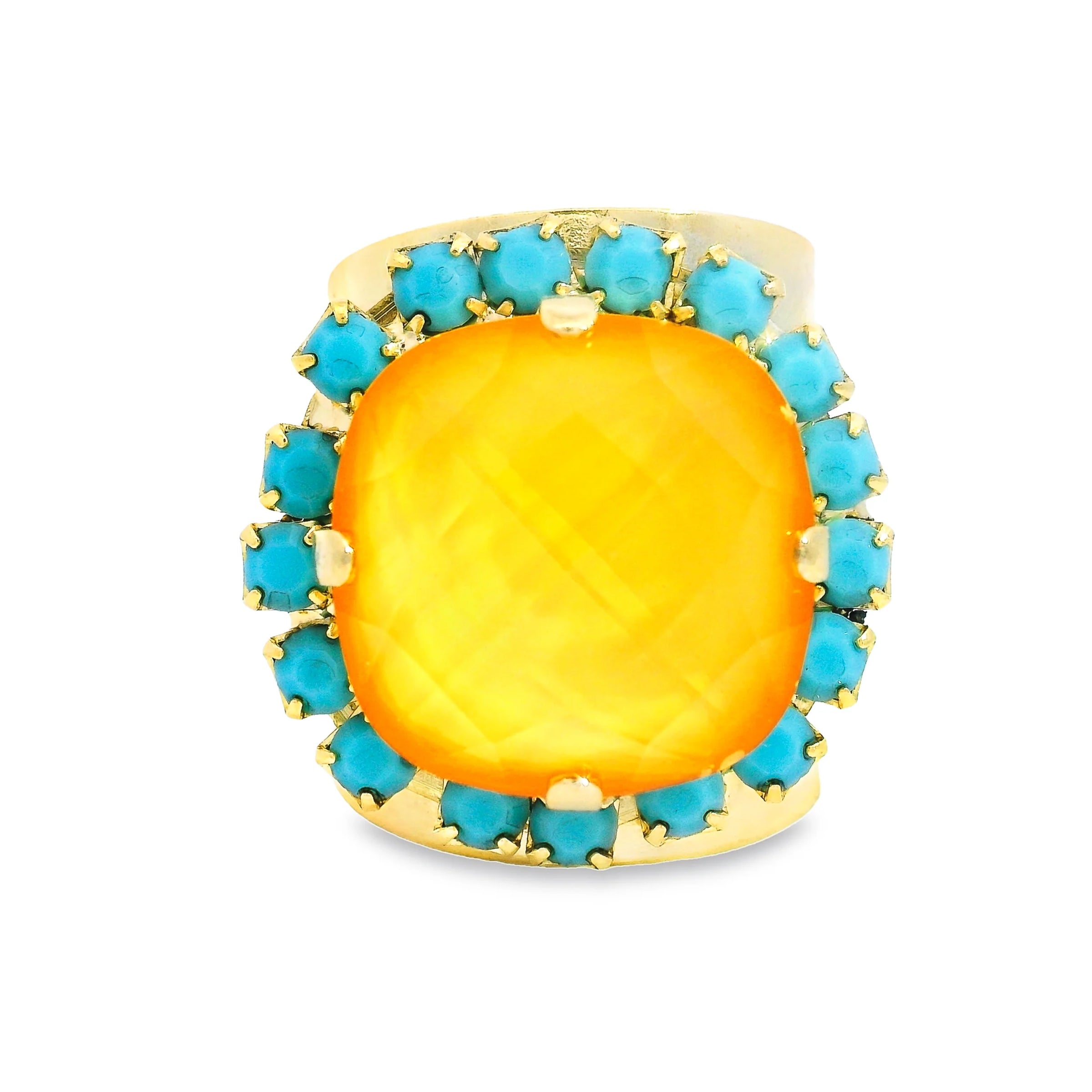 "Add a touch of antique charm with the Cambrie Ring in Orange. This handcrafted Canadian piece features high-quality crystals, making it the perfect accessory for any occasion. Plus, it's brass base metal ensures long-lasting wear. Perfect for a one-of-a-kind look. (And a great story for when you get asked where you got it from!)"