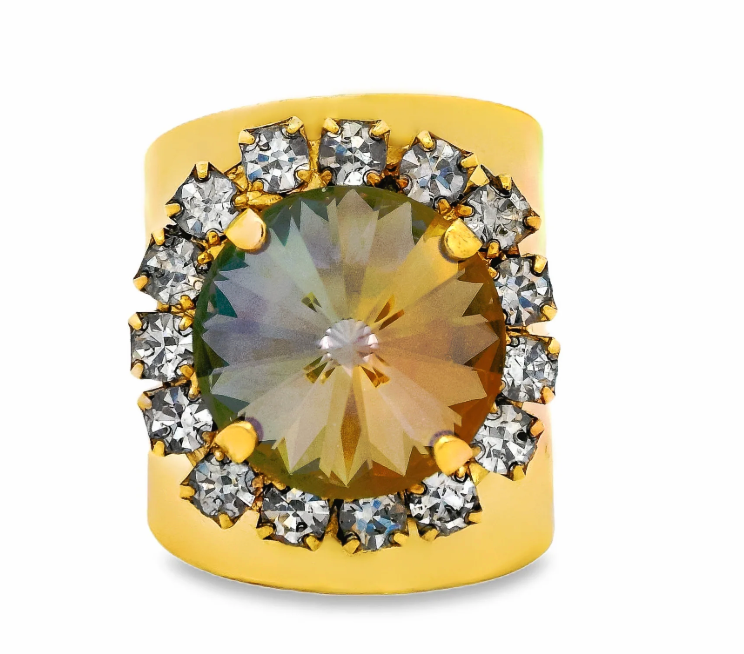 Make a real statement with the Jacci Ring! This bold, adjustable ring is made from Light Gold plated Brass base metal and is covered with twinkling high quality crystals. The 14mm stone adds an extra touch of glamour and sparkle. Whether you're dressing up for a night out or adding a bit of bling for a special occasion, this Made in Canada piece will make you shine.