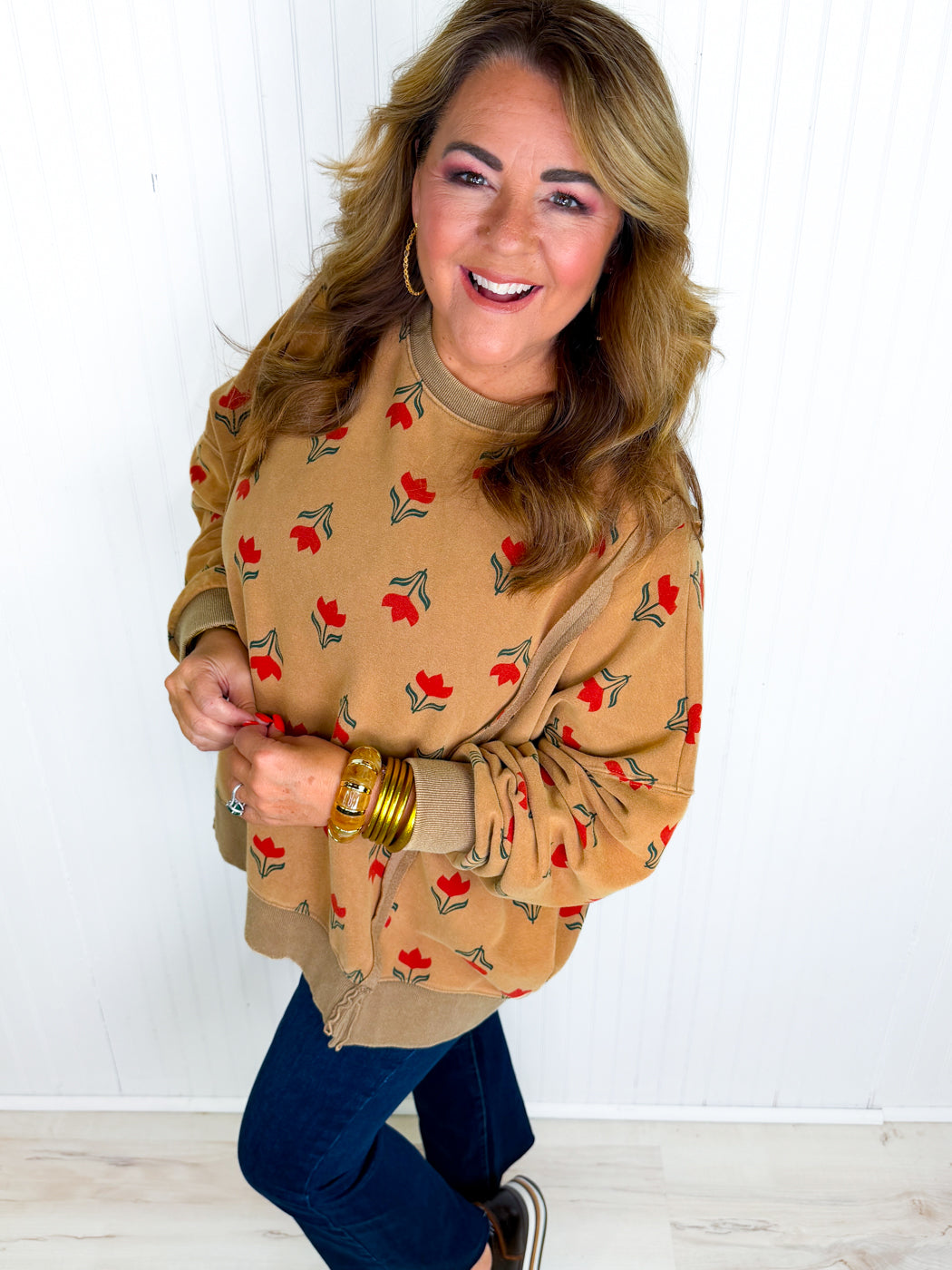 The Warm and Wishful Pullover is a cozy oversized top designed for comfort and style. It features an easy, relaxed fit with roomy sleeves and subtle side slits for a flattering look. Perfect for layering on cool days, this pullover pairs effortlessly with jeans or leggings for a casual, laid-back outfit!