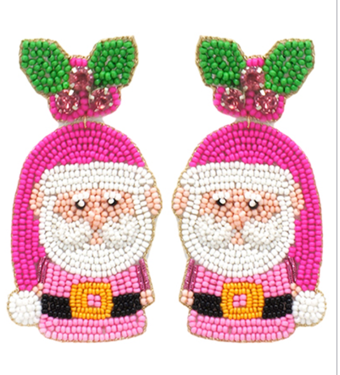 Merry Pink-Mas Beaded Santa Earrings