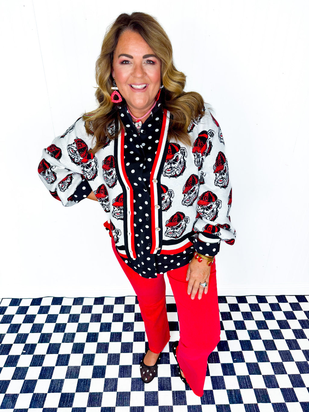QOS- UGA Knit Mascot Rhinestone Cardigan
