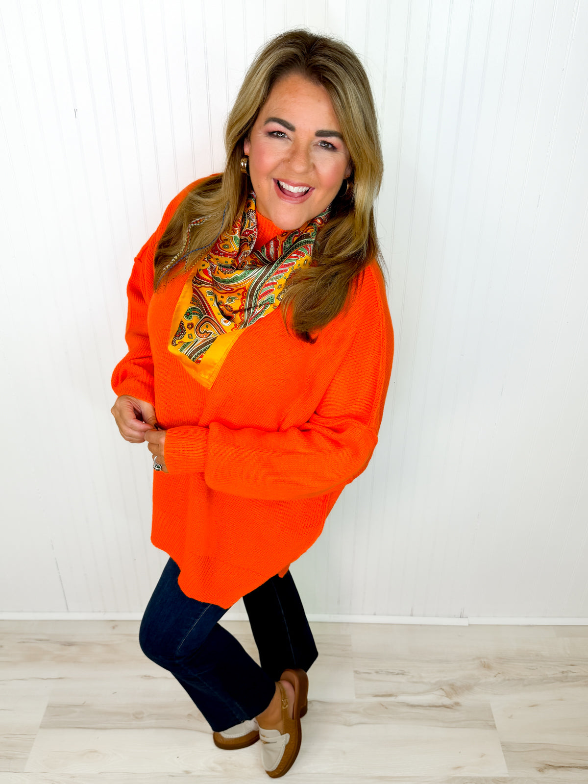 The Tangerine Dream Sweater is designed for comfort and style with a relaxed fit and stretchy 100% acrylic material. Soft and cozy, it moves with you for all-day wear. Its vibrant tangerine color adds a pop to any outfit, making it a versatile choice for fall and winter. Pair it effortlessly with jeans, leggings, or your favorite boots for casual or layered looks. Easy to care for and durable, this sweater is perfect for everyday wear while keeping you warm. A must-have addition to your seasonal wardrobe for effortless style and comfort!