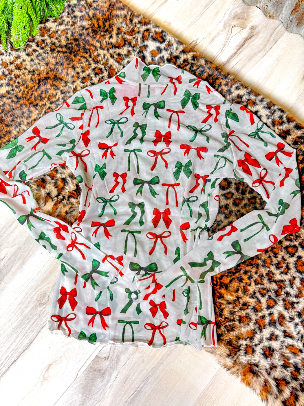 The Put A Bow On It Mesh Layering Top features a relaxed fit and stretchy material for all-day comfort. Designed for easy layering, it pairs perfectly under a sweater vest, graphic tee, or dress to add a festive touch. The mesh fabric provides lightweight coverage while keeping the look trendy and fun. Ideal for creating holiday-ready outfits, this top adds a subtle pop of style to any winter wardrobe. Its versatile design makes it great for dressing up or keeping it casual, whether you’re heading to a Christmas party or a cozy get-together. The Put A Bow On It Mesh Layering Top is a must-have piece for the holiday season!