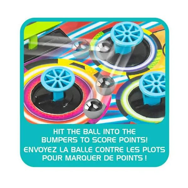 The Electronic Arcade Pinball game features fast-paced action just like in classic arcades, with vibrant colors, flashing LED lights, and vibrating bumpers to enhance gameplay. The exciting design invites players to challenge their friends for competitive fun.