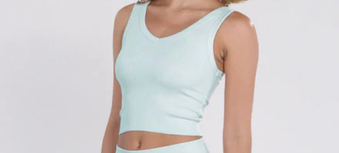 Bra30- Rib V-Neck -Cloudy Aqua