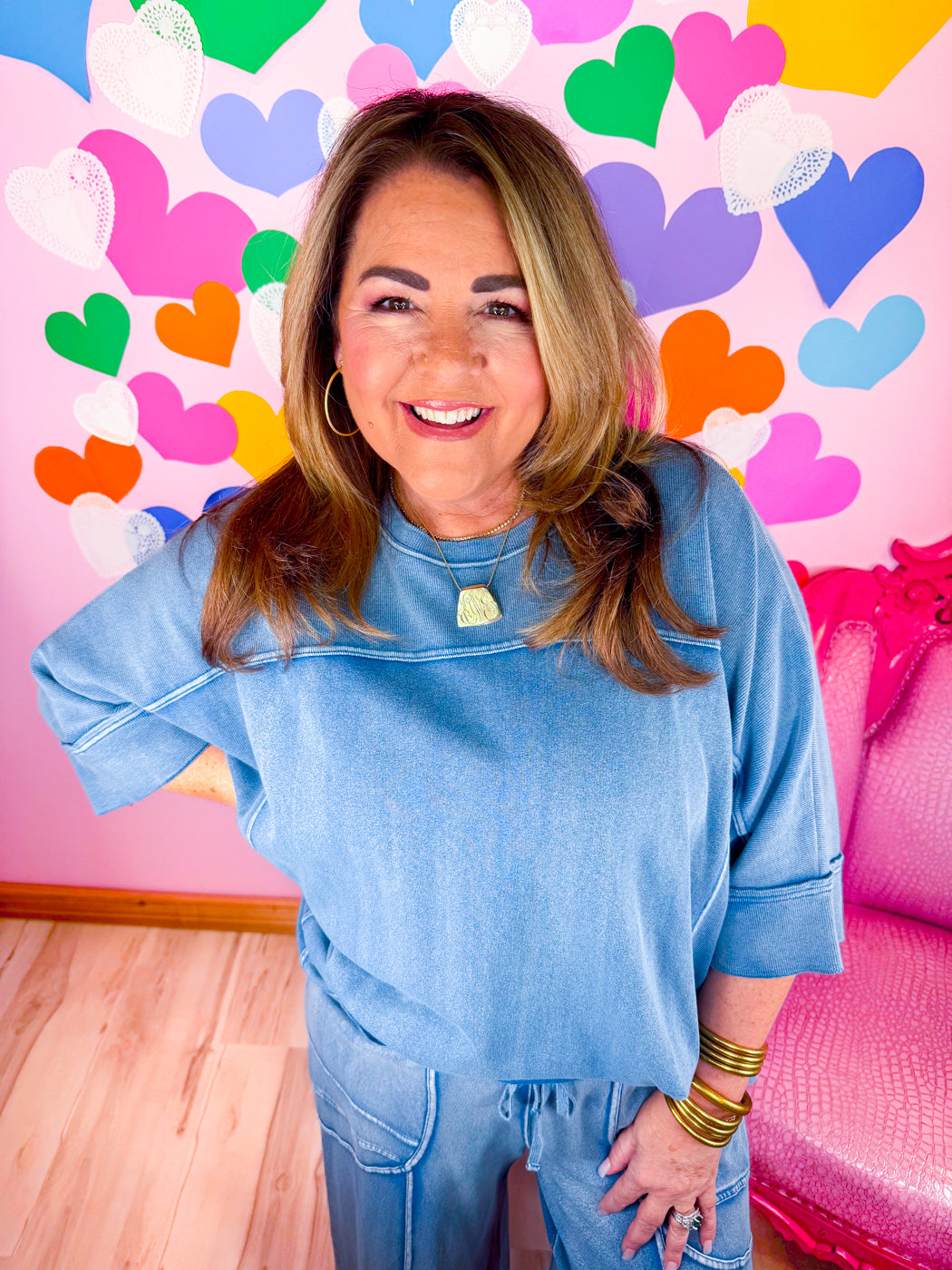 Embrace effortless style and all-day comfort with the Denim Drift Top. Made from 100% soft algodón in a washed denim hue, this versatile top is perfect for lounging, layering, or dressing up for a casual-chic look.