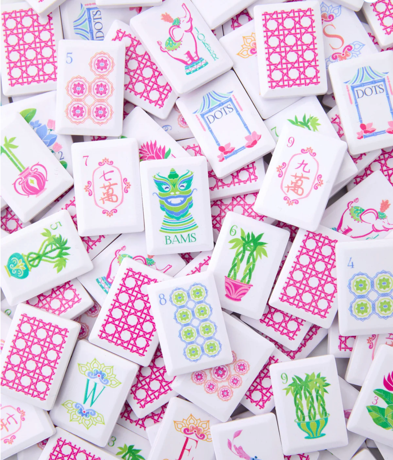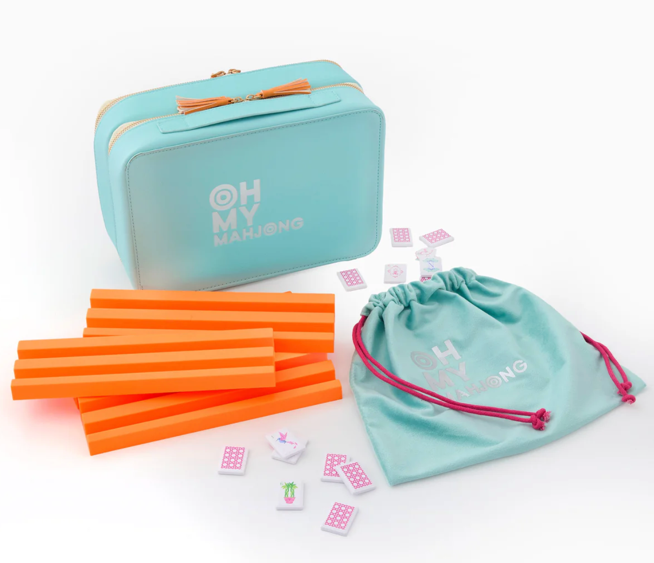 Bring the joy of Mahjong anywhere with the Poppy Mahjong Tile Set — a bright and cheerful take on the classic game that’s sure to make you smile. Featuring playful pink tiles, bold orange plastic racks, and a colorful blue-and-pink travel bag, this portable set was made for fun wherever you go.