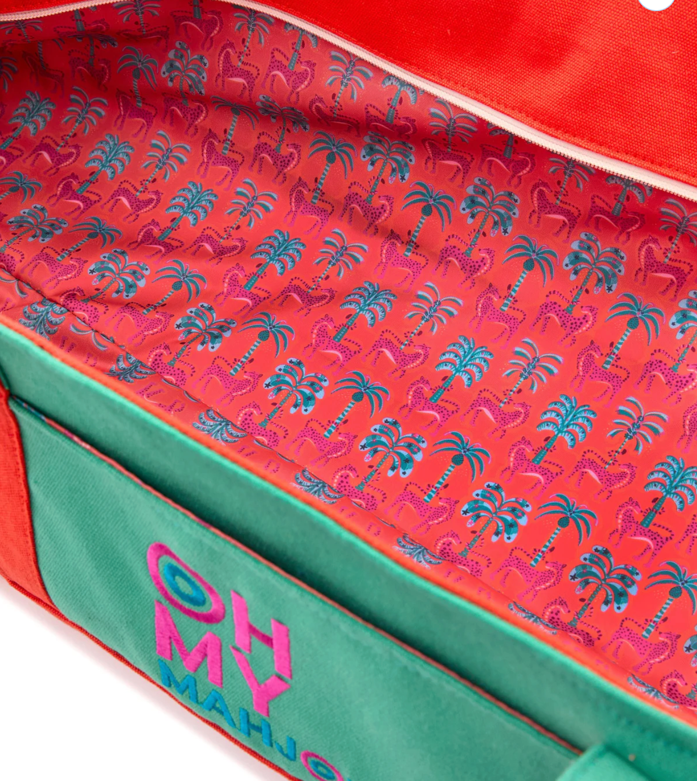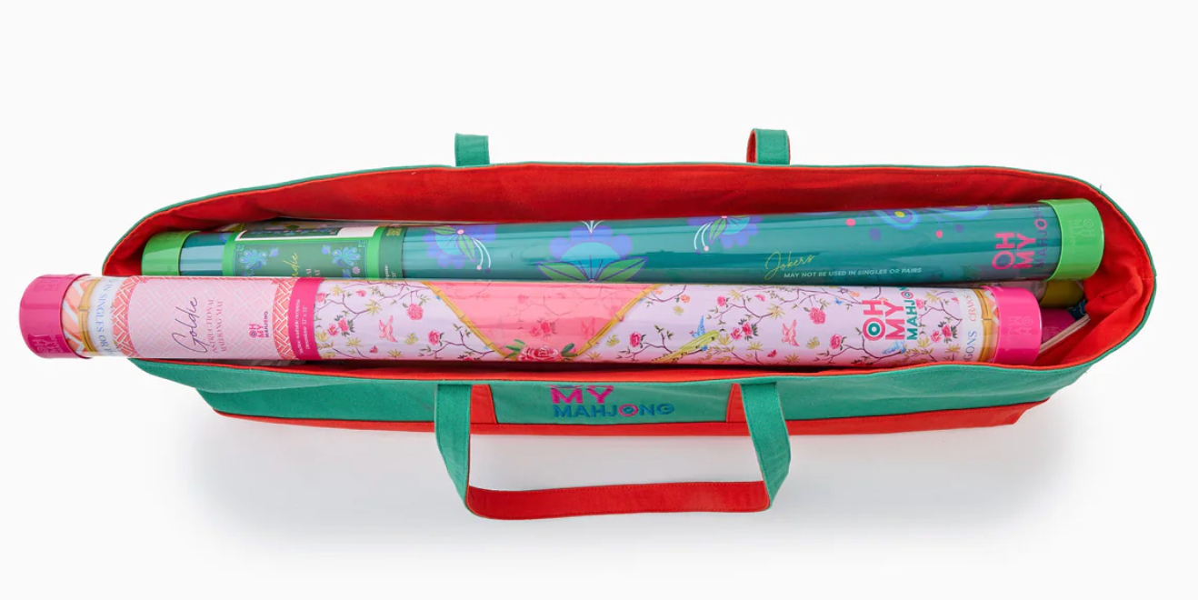 Meet your new Mahjong must-have! This canvas Mat Storage Bag is designed to keep all your Mahjong essentials organized while adding a touch of style to your teaching or game night.Spacious and thoughtfully designed, this bag is perfect for Mahjong teachers and mahjong enthusiasts and can fit a variety of setups:
