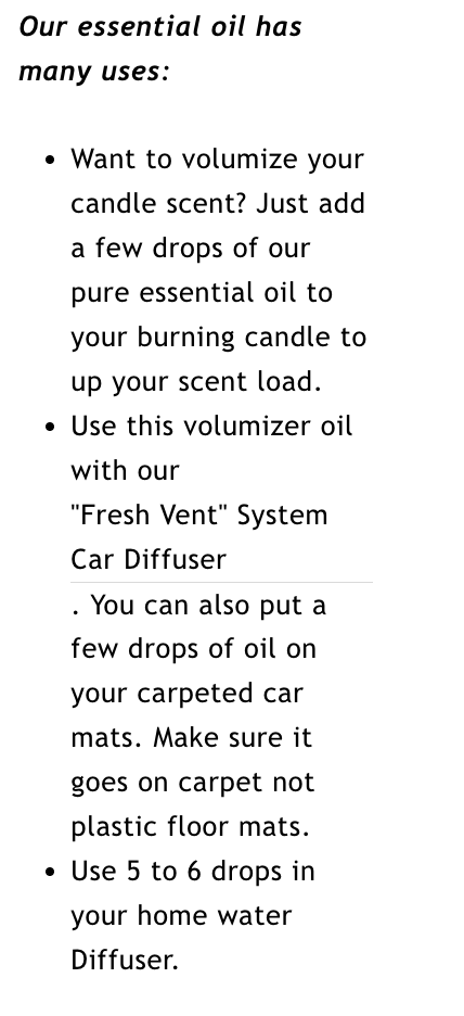 Want to volumize your candle scent? Just add a few drops of our pure essential oil to your burning candle to up your scent load.