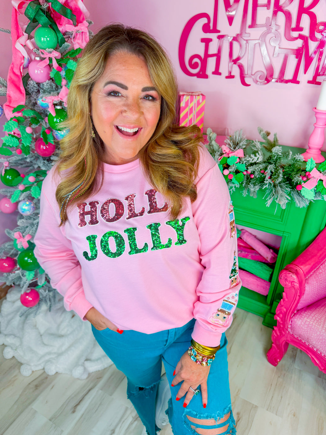 The Holly Jolly Sparkle Sweatshirt features a relaxed fit designed for comfort while maintaining a fun holiday look. Sequin details on the sleeves and front create a festive style that stands out for seasonal events and everyday wear. The soft fabric offers easy movement and warmth throughout the day. This sweatshirt pairs well with jeans or leggings, allowing simple outfit options for casual gatherings, holiday parties, or running errands during the season. It combines comfort and shine in one piece, making it a versatile addition to your holiday wardrobe!