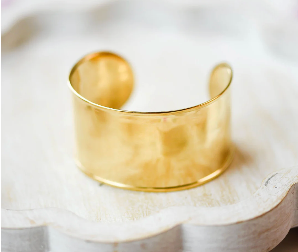 Make a statement with this bold and modern 1.25" wide cuff bracelet, crafted from high-quality 14K gold plated stainless steel. With its sleek, polished finish and substantial silhouette, this piece adds instant sophistication and edge to any outfit. Designed to be both eye-catching and comfortable, it’s hypoallergenic, tarnish-resistant, and made to last.