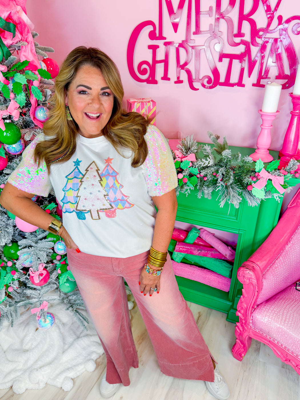 Festive Forest Sequin Sleeve Top