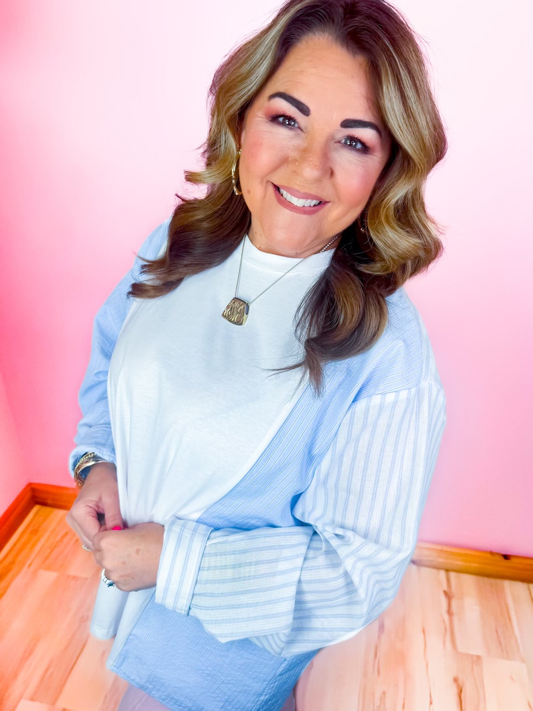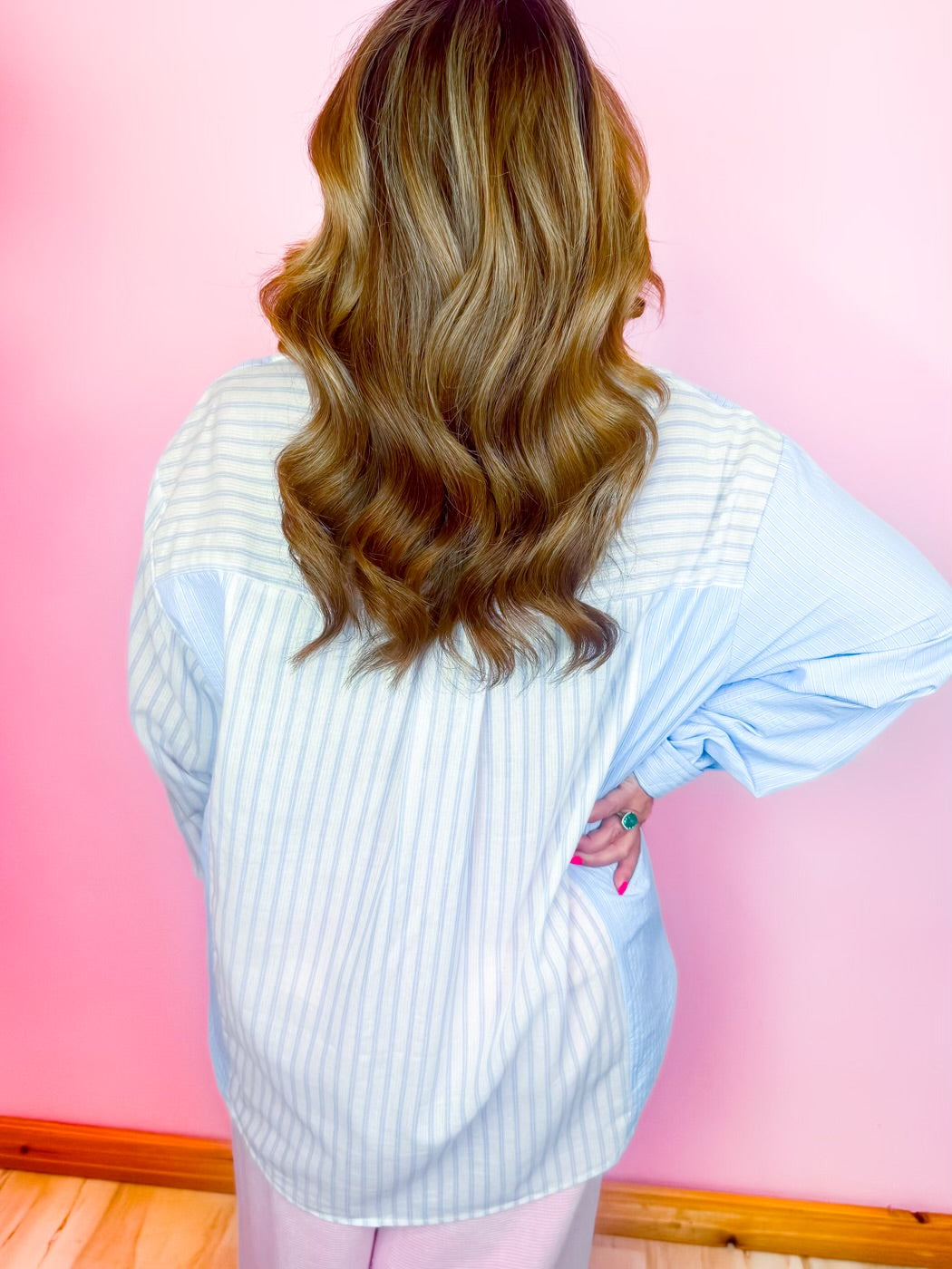Easy, effortless, and oh-so-sweet. The Pinstripe Pretty Pullover is the kind of throw-on-and-go piece you’ll reach for again and again. Featuring a soft baby blue hue with delicate pin stripes, this 100% cotton pullover brings that classic charm with a relaxed, comfy fit you’ll love.