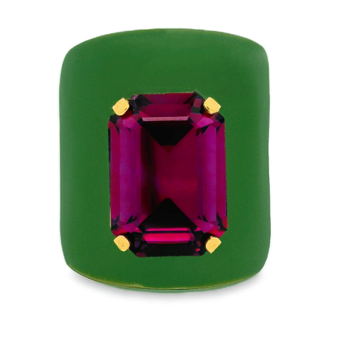 Mini Roddy Ring in Enamel Midnight Express- Green