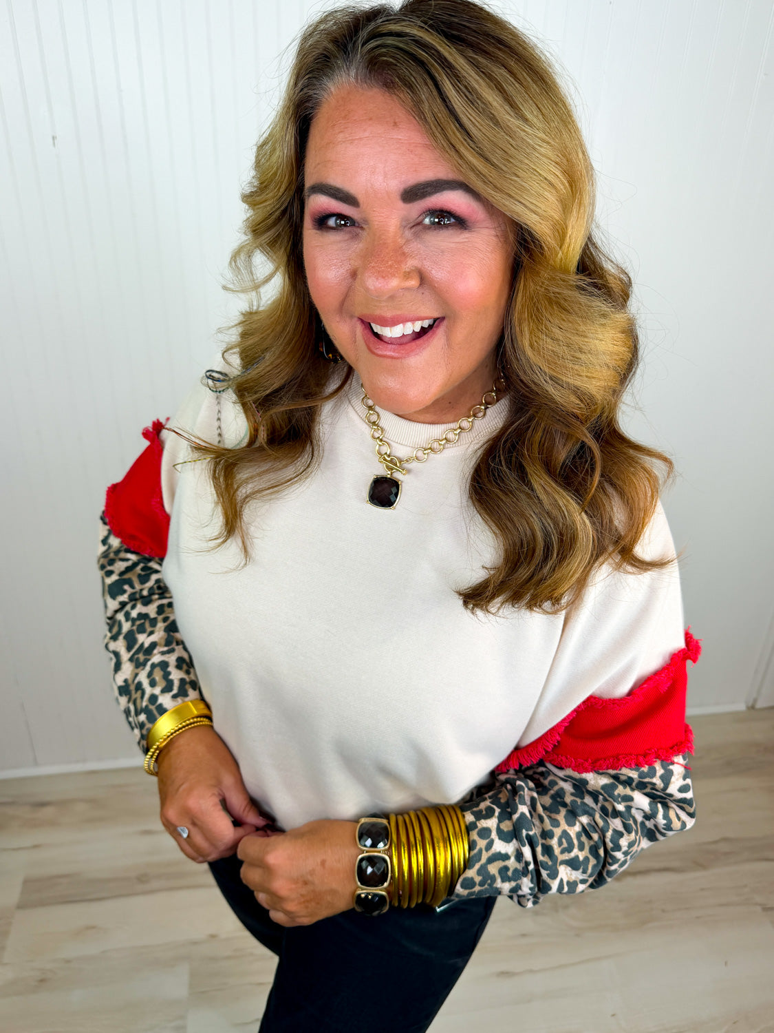 The Harley French Terry Leopard Top offers a relaxed fit that provides comfort and effortless style. Designed with a bold leopard print and striking red accents, this top adds a fun touch to any outfit. The soft French terry fabric makes it perfect for everyday wear, keeping you cozy while looking put-together. Its easygoing design pairs perfectly with leggings for a casual day or jeans for a more styled look. Versatile and eye-catching, the Harley French Terry Leopard Top is a great addition to your fall wardrobe and ideal for any occasion where comfort and style are key!